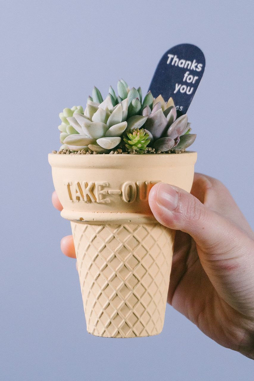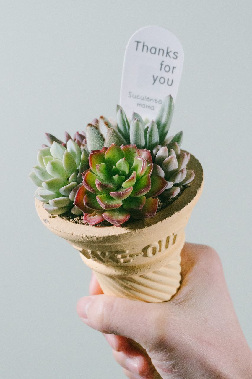 そのまま飾れる🍦思わず食べちゃいそうなコーンカップのポットに入った、ぷにぷにかわいい多肉植物の寄せ植えが入荷しました!