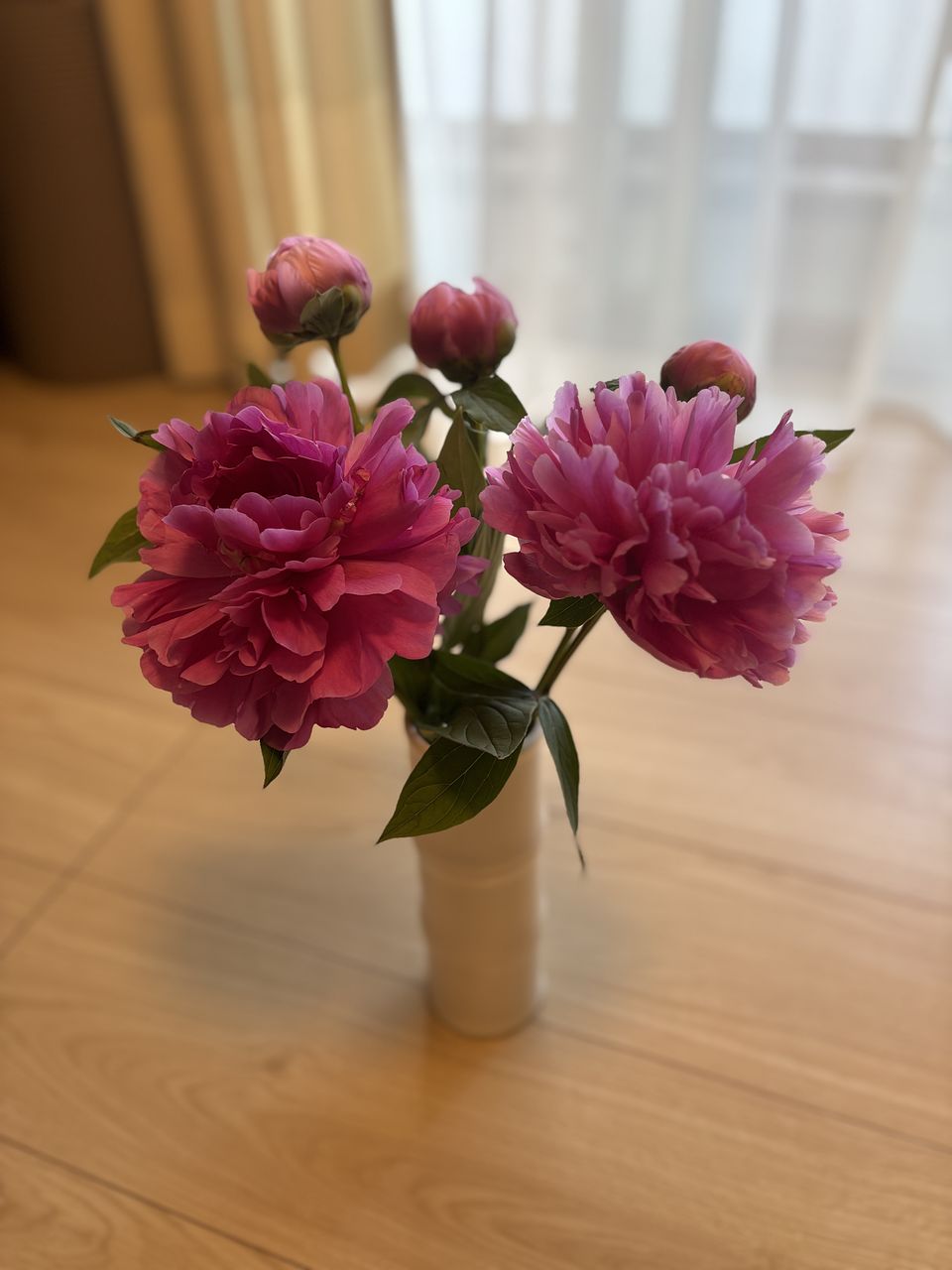 淡いピンク、ビビッドピンクなど大輪の芍薬をMIXで5本お届けします🥰