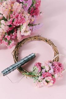 もこもこピンクやオレンジ色がかわいい🍊スターチスのリースキットが入荷しました。お花とリースの土台、ワイヤーのセットです。