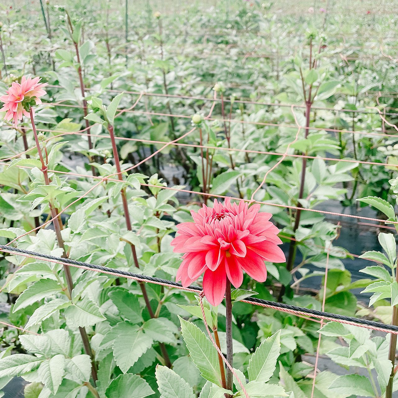 今回お届けするダリアの魅力は「日持ちのよさ!」と笑顔で語る生産者の飯島太陽さん。それは収穫後、まだ開きすぎない状態で出荷しているから。「良くも悪くも、生産者としてのエゴはほぼなくて。僕たちの花を楽しんでくれる方々に喜んでいただける花作りをモットーにしています。」スタッフのみなさんと一丸になって花を育てている姿が印象的でした。