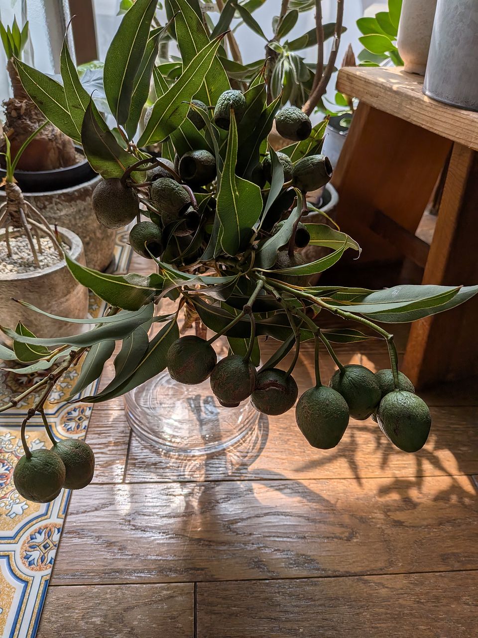 花瓶に挿せないくらい短い枝が数本ありましたが、ドライにしてたのしもうと思います。 大きな実がたっぷりで癒されます。