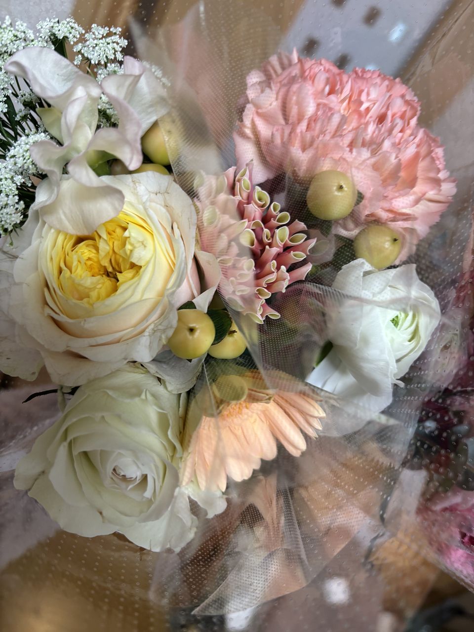 大晦日に愛らしいブーケが届いて華やかな年末になりました。来年もよろしくお願い致します!