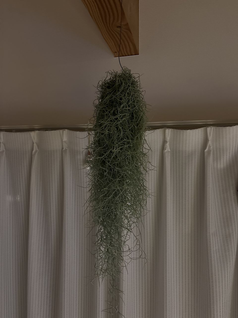 思った通りの綺麗で可愛らしいスパニッシュモスが届きました! ただ、少し触れただけでも葉が落ちるので、掃除をしやすい場所の上に掛けると良いと思います。 これからどのように成長していくか楽しみです。