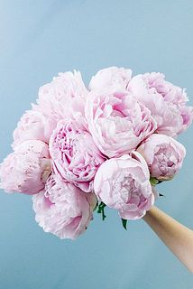 ふわっふわな淡いピンクが愛らしい😍芍薬「サラベル」「ルーズベルト」などを9〜10本贅沢に束ねました!🉐