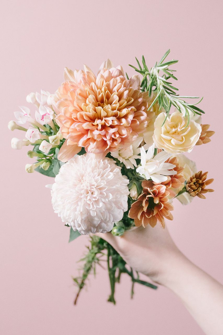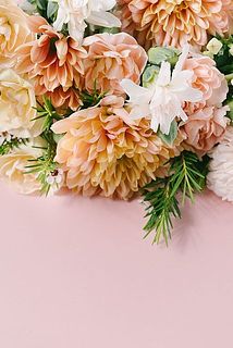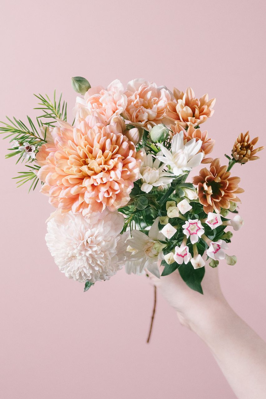 アプリコットやミルキーピンク、ホイップのような白の花たちが、やさしく寄り添いながらふわっと咲き誇ります。グリーンのアクセントがほどよく効いて、ナチュラルな甘さの中にも爽やかさをプラス。