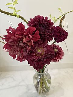 深い赤がうつくしい芍薬「ヘンリーボックストース」と鮮やかな濃いピンク色の芍薬を組み合わせた大人のブーケ🍓