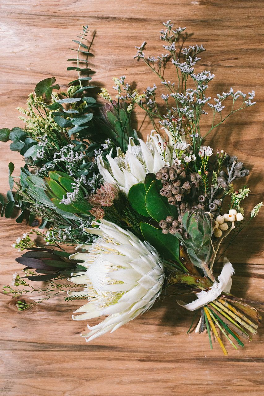 リューカデンドロンなど、ネイティブフラワーをたっぷりと束ねてます。