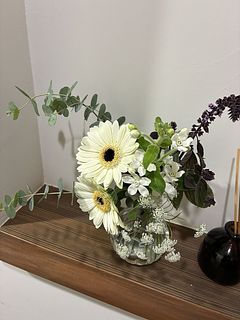 元気いっぱいの子達が届きました! 箱を開けた瞬間良い香り♡ グリーン多めで好みでした。 早速水揚げし 一緒に購入した花器に生けてみましたが こちらのブーケにぴったりでした。 長く楽しめるよう丁寧にお手入れしたいと思います。