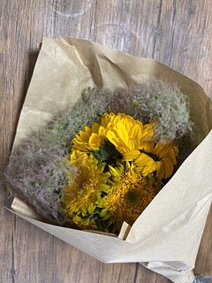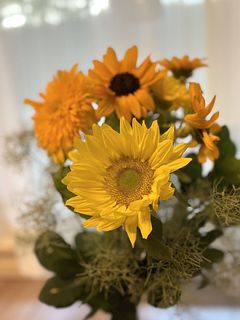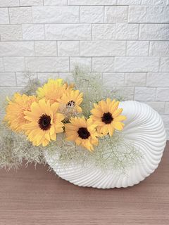 ちょっとだけスモークツリーが茶色になってしまっていたのもありましたが、センスの良い可愛いお花が届きました! スモークツリーが土台になってくれて、ひまわりが飾りやすかったです笑 写真は、処分したものもあるのでちょっとボリュームが下がってしまいました😅 また色々と頼んでみたいと思います♪