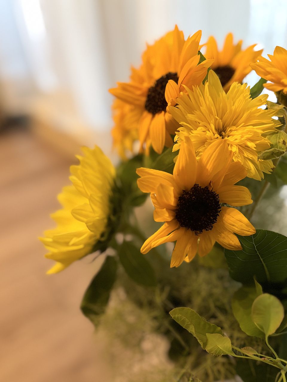とても可愛くて気に入っていますが、スモークツリーが一部というより、来た時点でかなりどらいになっている部分が多く、少し想像と違いました。水揚げはどちらもうまくいき、向日葵はだれることもなく元気に咲いています。