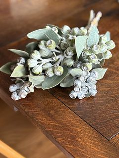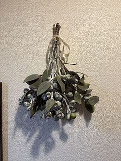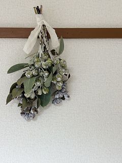 葉のグリーンと実のシルバーが涼しげ フレッシュな香りがします。実もたくさんついててとても可愛いのが届きました 玄関にスワッグにして飾ります
