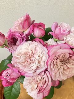 くしゅくしゅした花びらが集まっていて、とーっても可愛いです🌹💗 開封してみると、蕾が2本分根本から折れてしまっていたのが少し残念ですが、あとは無事だったのでよかったです!😊
