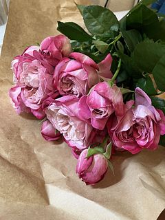 2輪ほど茶色いのが混ざってました🥹 バラ初心者なのでこれが普通なのかわからないのですが💦 香りは私はダマスクの方が好きだということが分かりました。