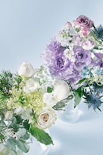 清らかなホワイトやみずみずしいグリーン、そこにふんわり重なるパープルやブルーの花々。