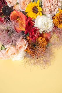 夏のお花を使った、ちょっと大人っぽいアンティークカラーのブーケはいかが?元気すぎない、でもおしゃれな組み合わせにこだわりました。スモークツリーは今の時期だけの特別なお花。ひまわりとの季節のコラボを楽しんで🌻