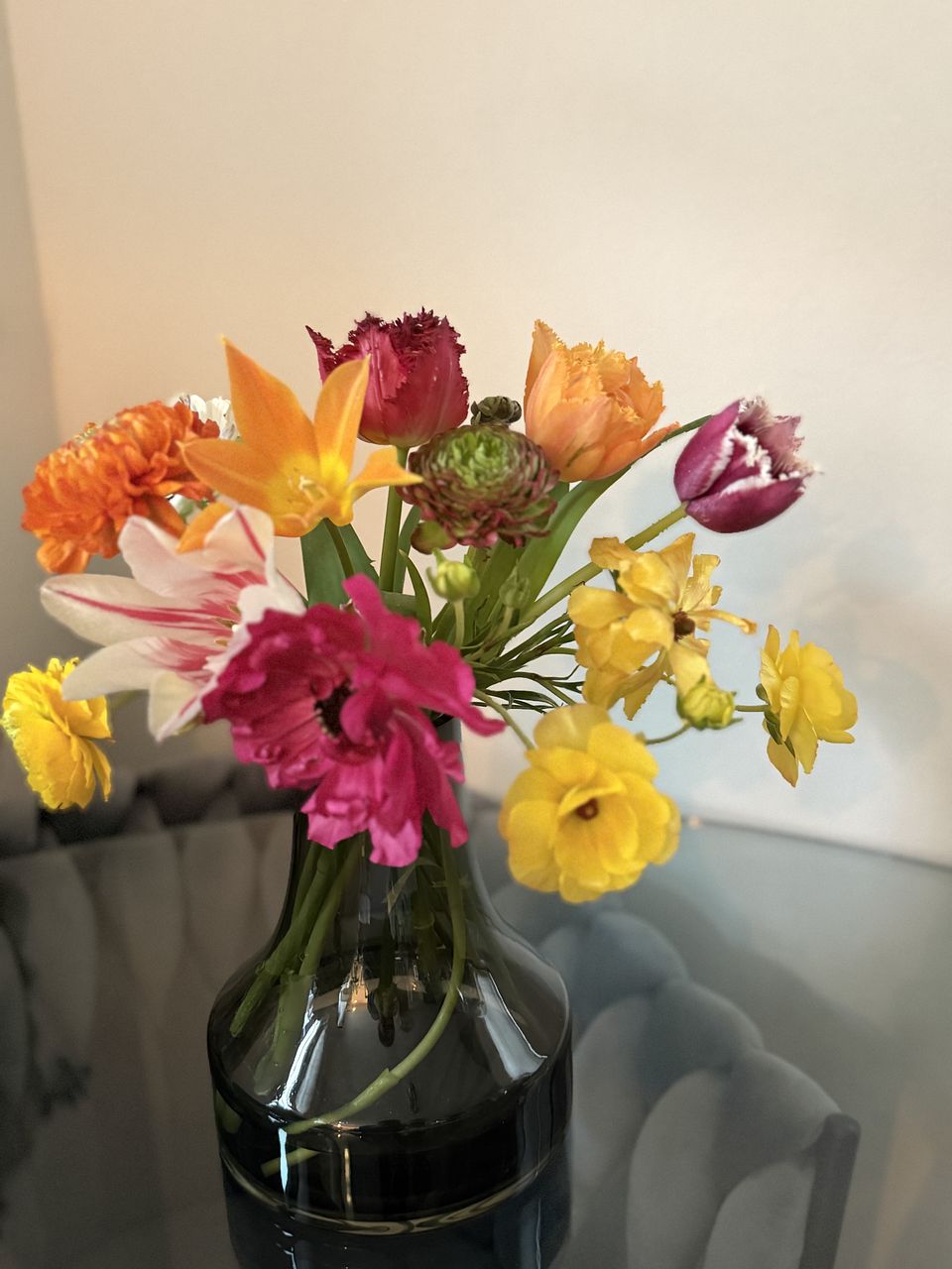 「もっと大胆に花を飾ってみたい」「大きな枝ものにもチャレンジしたい」そんなあなたにぴったりな花器「ファゴット」。人気のクリアの他に、グレーをご用意しました。