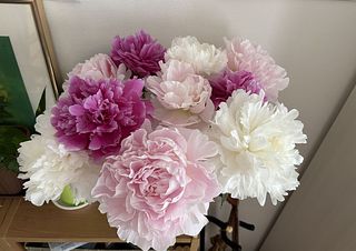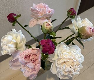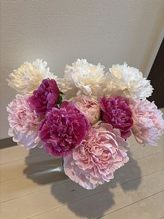 毎年ピオニーの季節を楽しみに購入しております。今まで蕾のままなんてこともありましたが、しっかり蕾から開花させる秘訣も教えてくださっていて、全て満開となり、ほんとに見事でした💐 品種によっても香りが全然違く、ユリやジャスミンまでの強い香りではないけれど、香りまで楽しむことができました。 8本もの大輪でしたので、2箇所に置いて、蕾から1週間ほど楽しめました。