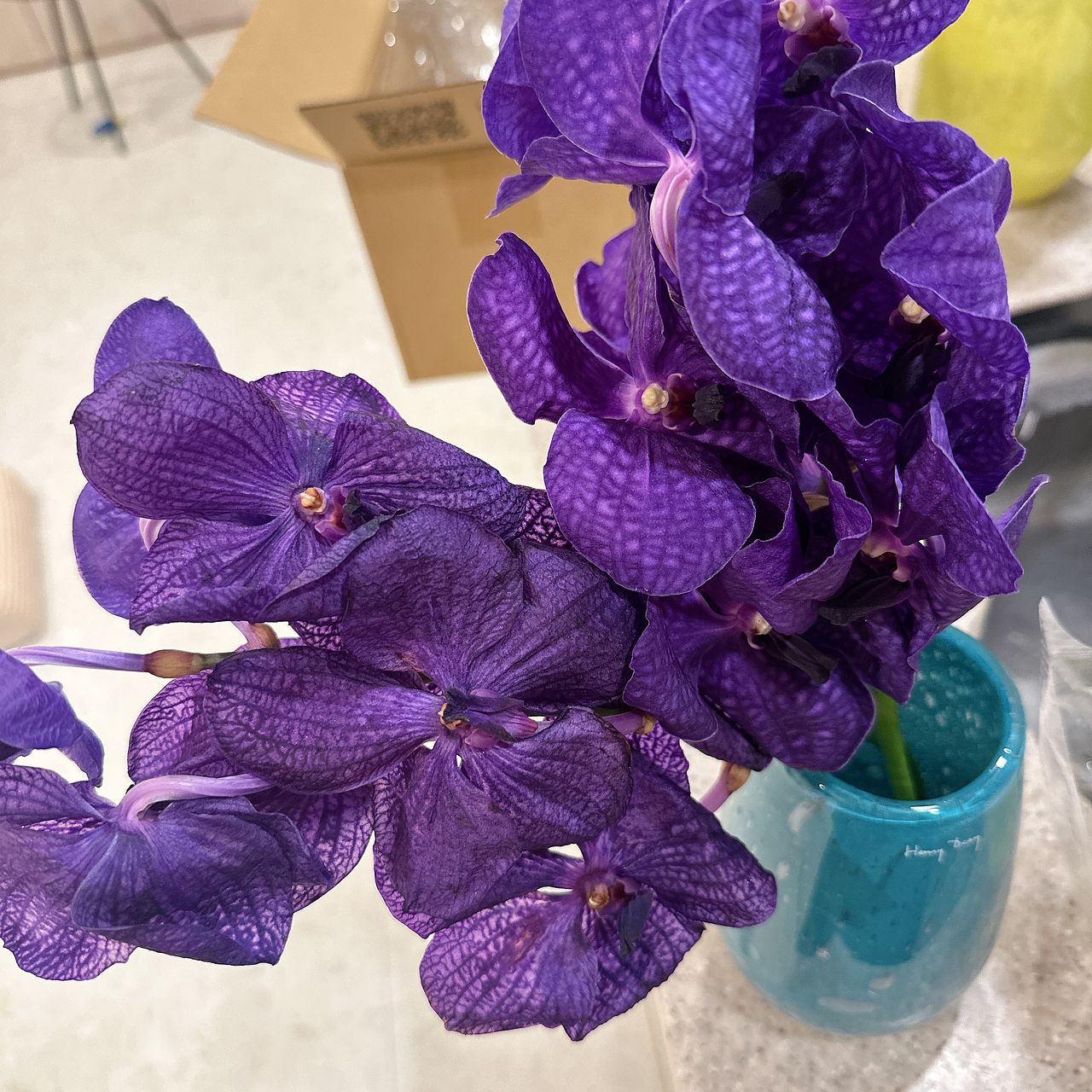 深紫の高貴な雰囲気のバンダというお花、とても素敵なたたずまいです💜