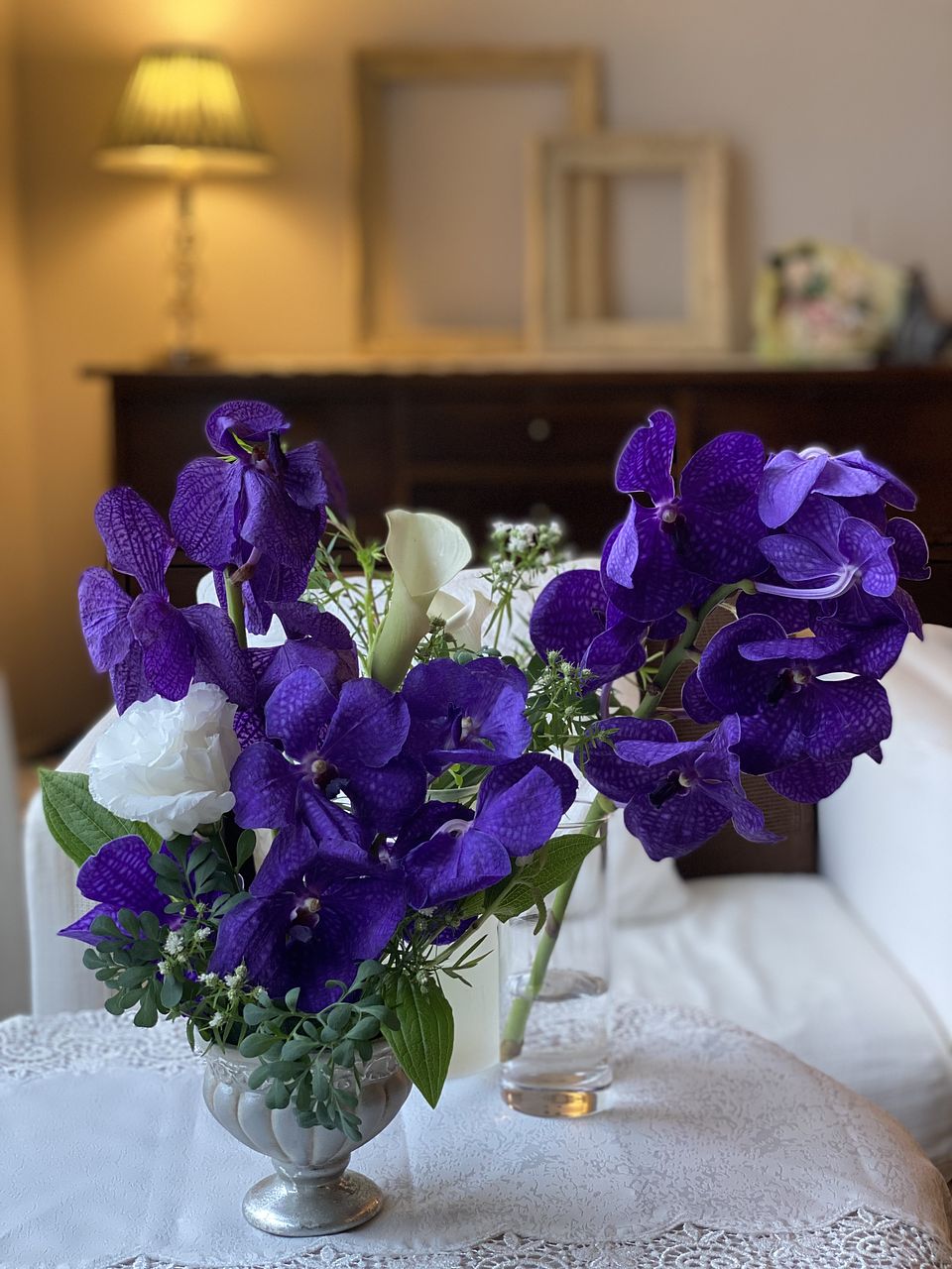 このお値段で 存在感のある高貴なお色の蘭が2本2カ所に飾れて大満足です♪