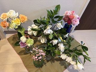 小さく可愛らしいバラです🌹。棘に苦戦しましたが、アレンジとして7月5日まだ少し残っています。 世界一小さなばらを見る機会があり良かったです。他の花と映っていますが大きさの比較になって良いかと思います。