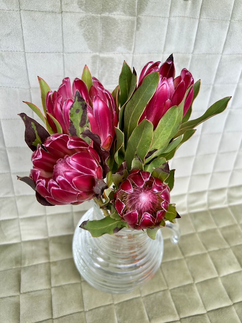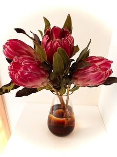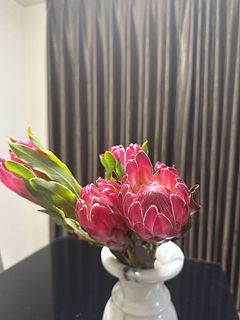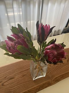 プロテアに興味がなく購入したことがありませんでしたが、写真のツヤツヤに惹かれて初購入! 葉っぱは確かに変色が多かったですが、写真通りのツヤツヤで大きく存在感バッチリ◎ 常温便で昼頃に届きましたが、とっても元気でした!ツヤツヤを楽しんだ後はドライに挑戦してみようと思います。