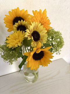 フレッシュなグリーンアナベルと太陽のようなひまわりの思わず気分が上がる組み合わせ🌞💚