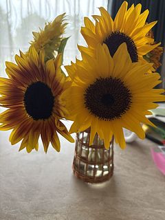 アナベルはだいぶ元気がなくて、復活を信じて液肥で様子見👀 ヒマワリは元気🌻家の中が明るくなりました☺️