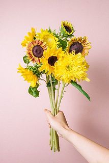 思わず懐かしい気持ちになるひまわりだけのブーケ🌻👒
