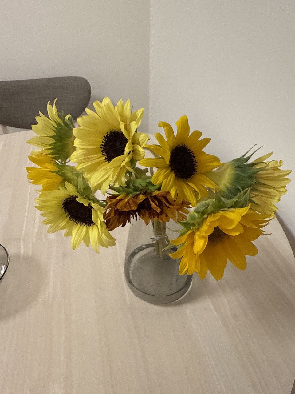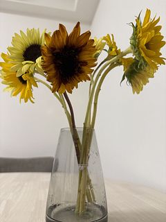 思ったより全部下を向いていて、飾りづらかった。ひまわりだから仕方ないんでしょうか。
