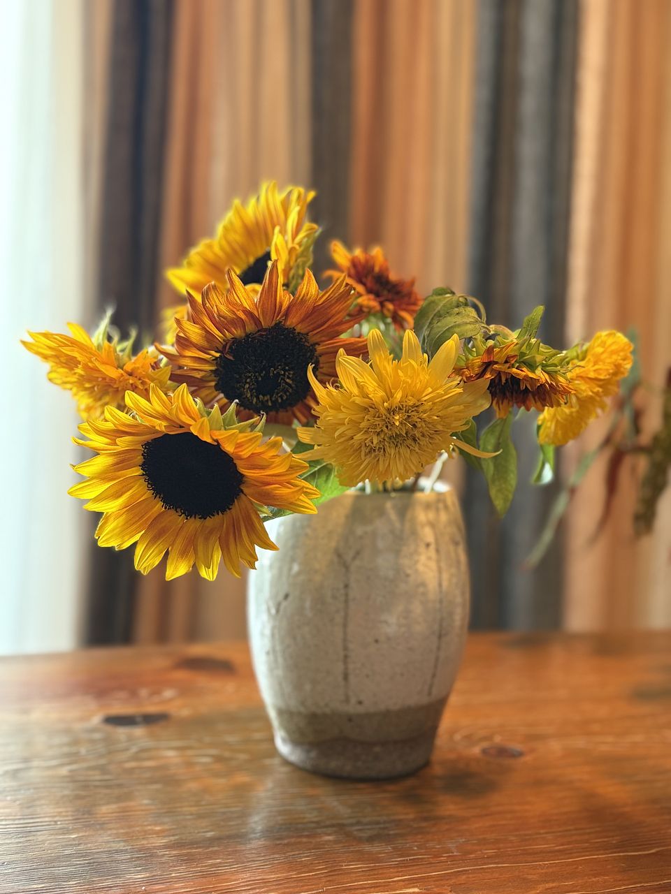 八重咲きやブラウンなど希少な品種を集めた入ったひまわりだけのブーケ🌻🌆ヴィンテージな雰囲気や、個性光るブーケがお好きなあなたへ。