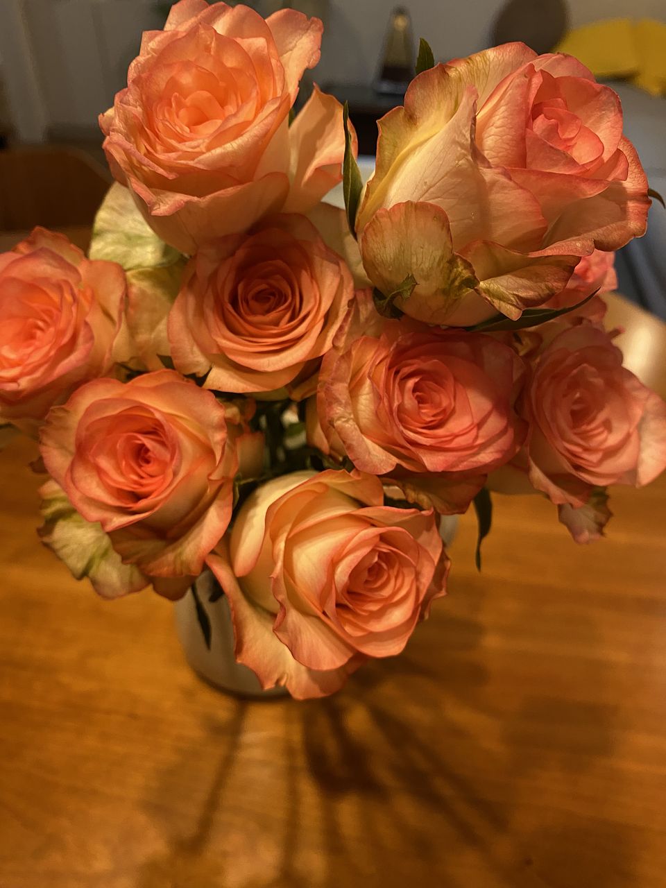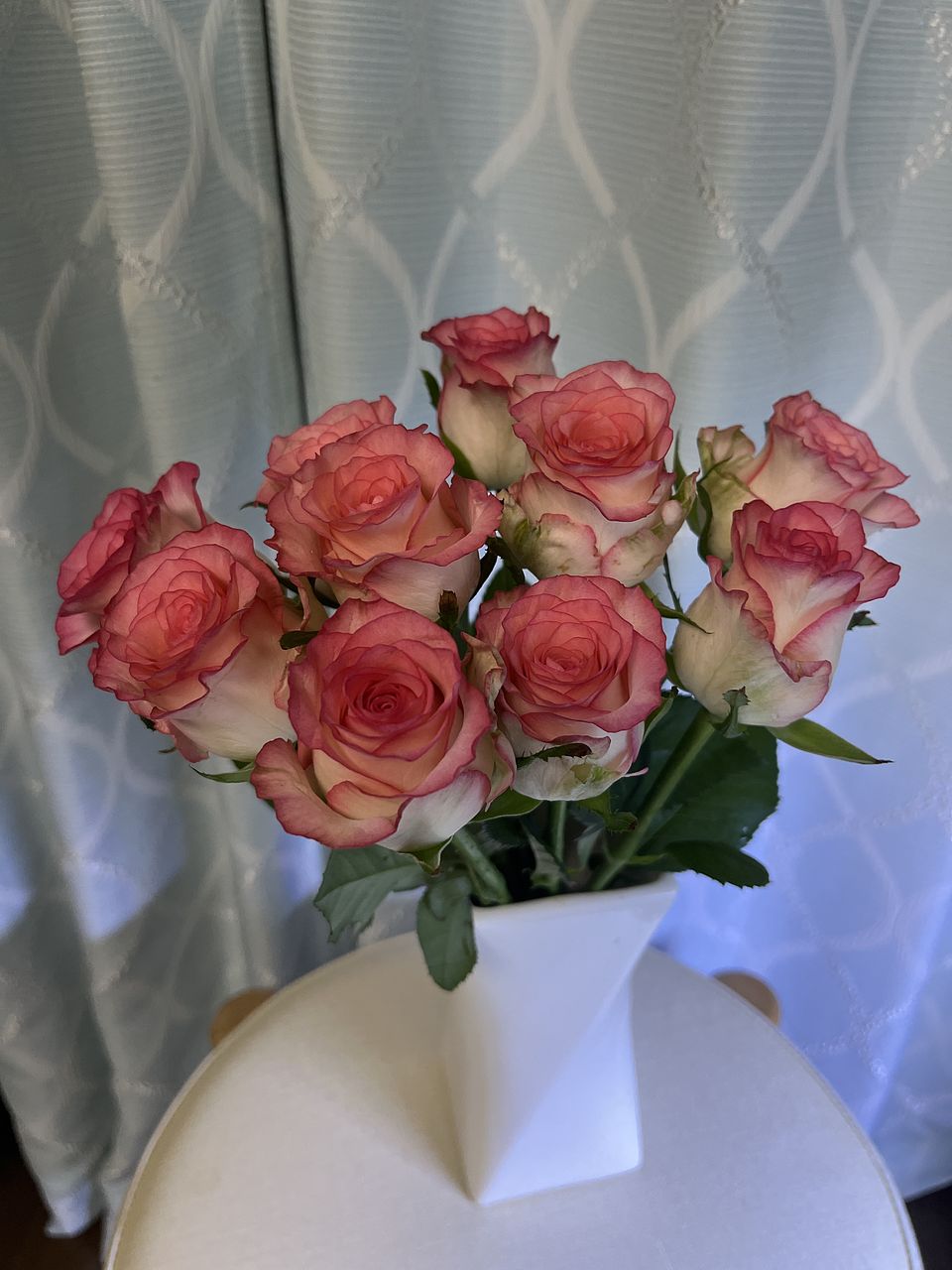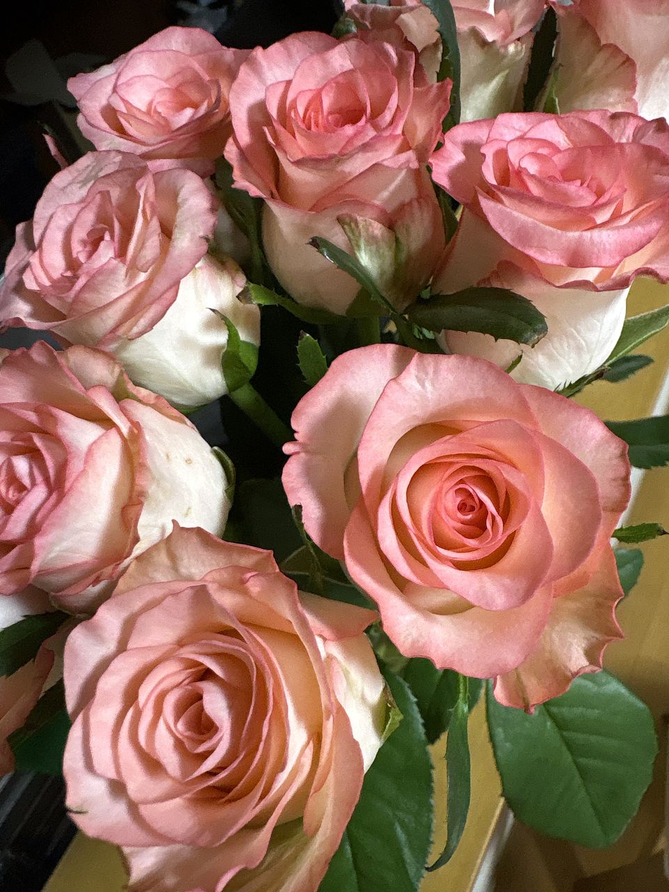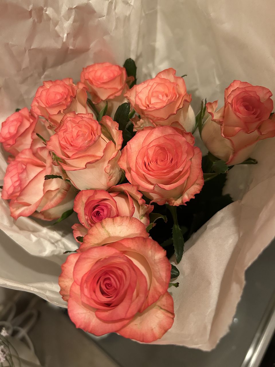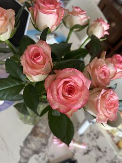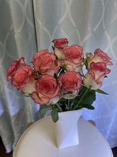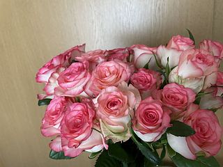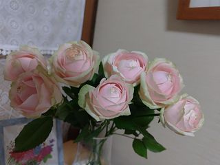 かわいらしいピンクとホワイトのバラが届きました。ほんのり香りもしています。お部屋が明るくなりました。