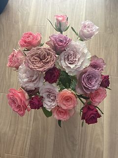 初めての利用です。生産者様を応援するというコンセプトが購入の決め手でした。くすみ系のシックな色合いがとても素敵でセンスの良さを実感。商品紹介の写真は参考程度に留めていたのですが、予想以上のものが届き嬉しかったです。お花は水切り、花鮮度保持剤(当時の購入特典)を使用するなどしてケアしましたが、気品ある佇まいを長く維持してくれました。元々は生産者様が丹精込めて育ててくれたおかげですね。感謝致します。また、私的にはパリの人達のように日常的にお花を飾る習慣が日本でも広がるといいなと願っています。この度はどうもありがとうございました。