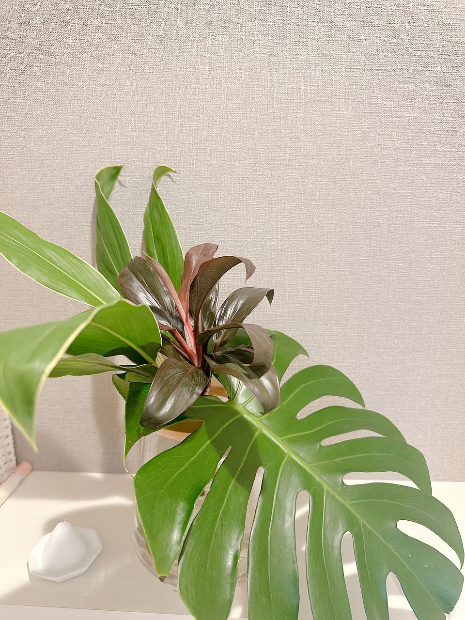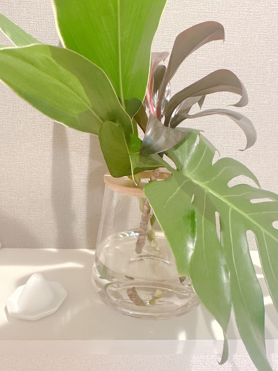 特にドラセナは、動きがあって面白いとは思うけれど、初心者なので平らな花器とか剣山は持ってない……途方に暮れてあれこれ試しているうちに、モンステラを少し破ってしまったり、思ったよりいろいろ難しかった。