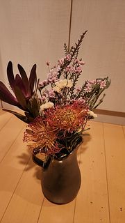 お店ではなかなか見かけないお花があると嬉しいですね。特別感があります。スターチスが枯れてしまって活けるまでにポロポロたくさん落ちてしまいました。
