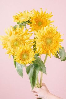 ※ひまわりは特性として下を向いているものがありますが品質に問題はありません。花のすぐ下を紙で上を向くように巻いて水揚げをしてみると、上を向くかもしれません。
