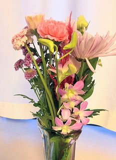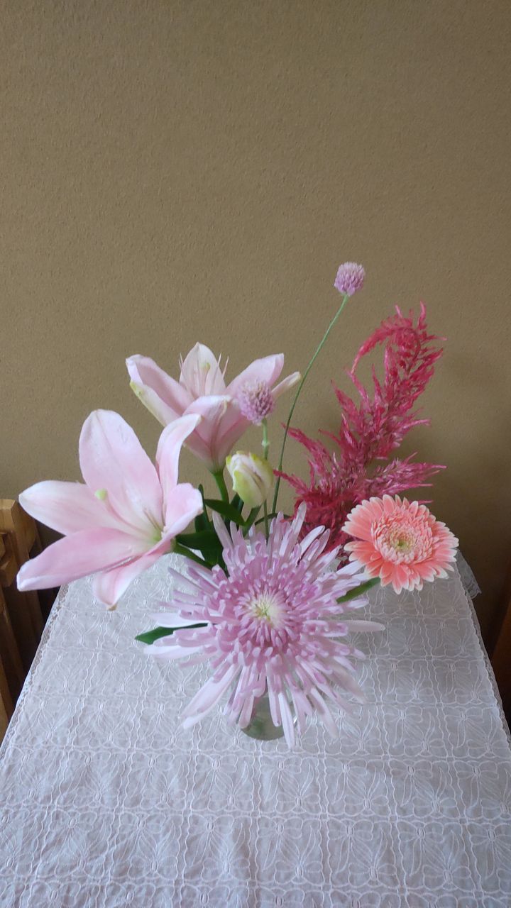 ペットのお彼岸用で購入しました ピンク系の可愛いらしいブーケが届きました ユリはまだ蕾で咲くのが楽しみです 追記 ユリ 綺麗に開きました