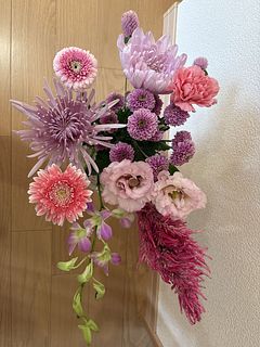 とても良い状態のお花が届きました。 素敵でしたが、私的にはケイトウとカーネーションはナシの方が良かったので、別にして庭の水引きを少し足して飾りました。 またお願いしようと思います。