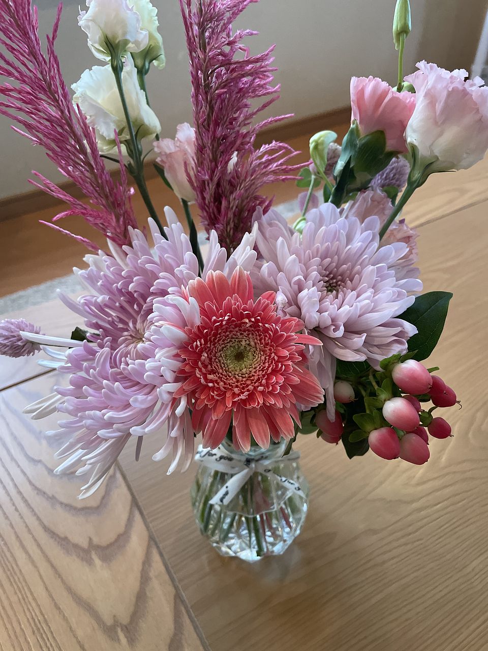 可愛らしくて優しいピンクのブーケをありがとうございました。 日持ちもよく、綺麗に咲いています。