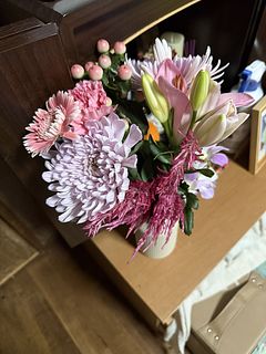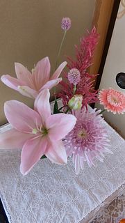 実家の仏壇の管理が難しいので造花を手向けています。せめて彼岸や命日の墓参りには美しい花を手向けたいと思い購入しています。 ピンク色が主体の可愛いお花🌸で先祖も喜んでいると思います。