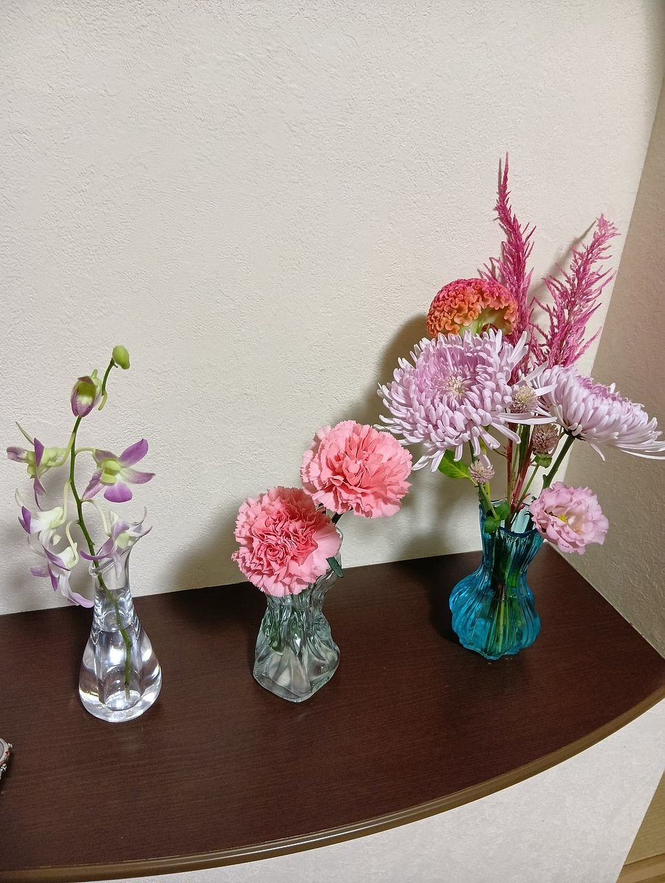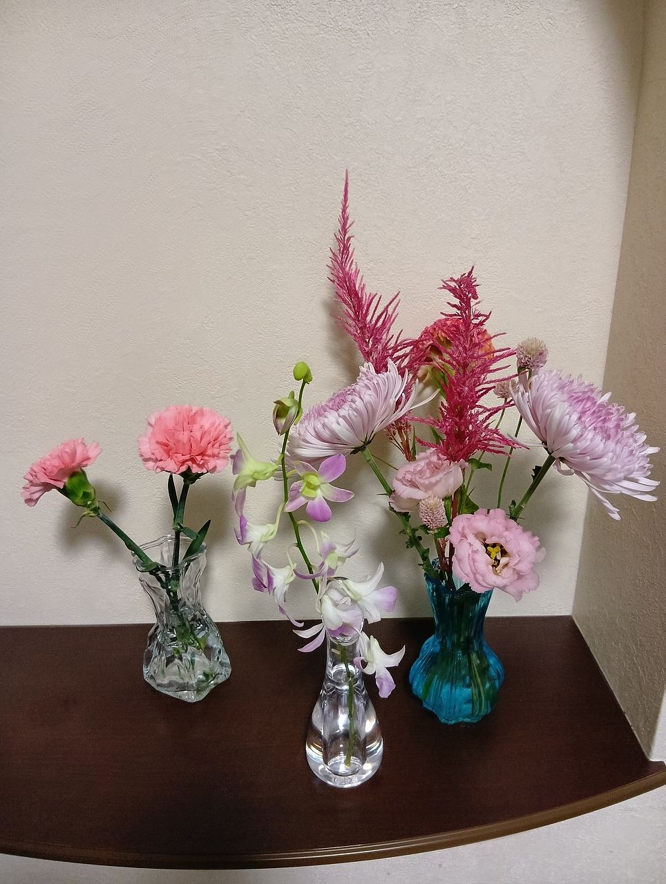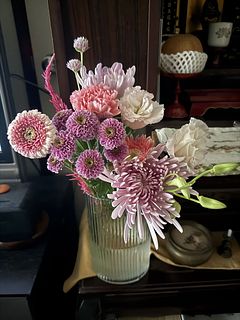 父のお彼岸ように実家に飾りました。普段売ってない花などもあり、一気に華やかになりました。