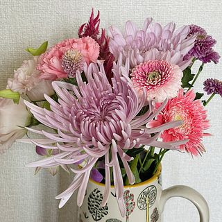 ピンクの色の菊の花でお供え花感がなく可愛らしく良かったです。商品の状態も良く梱包もきれいでした。 またリピしたいです!