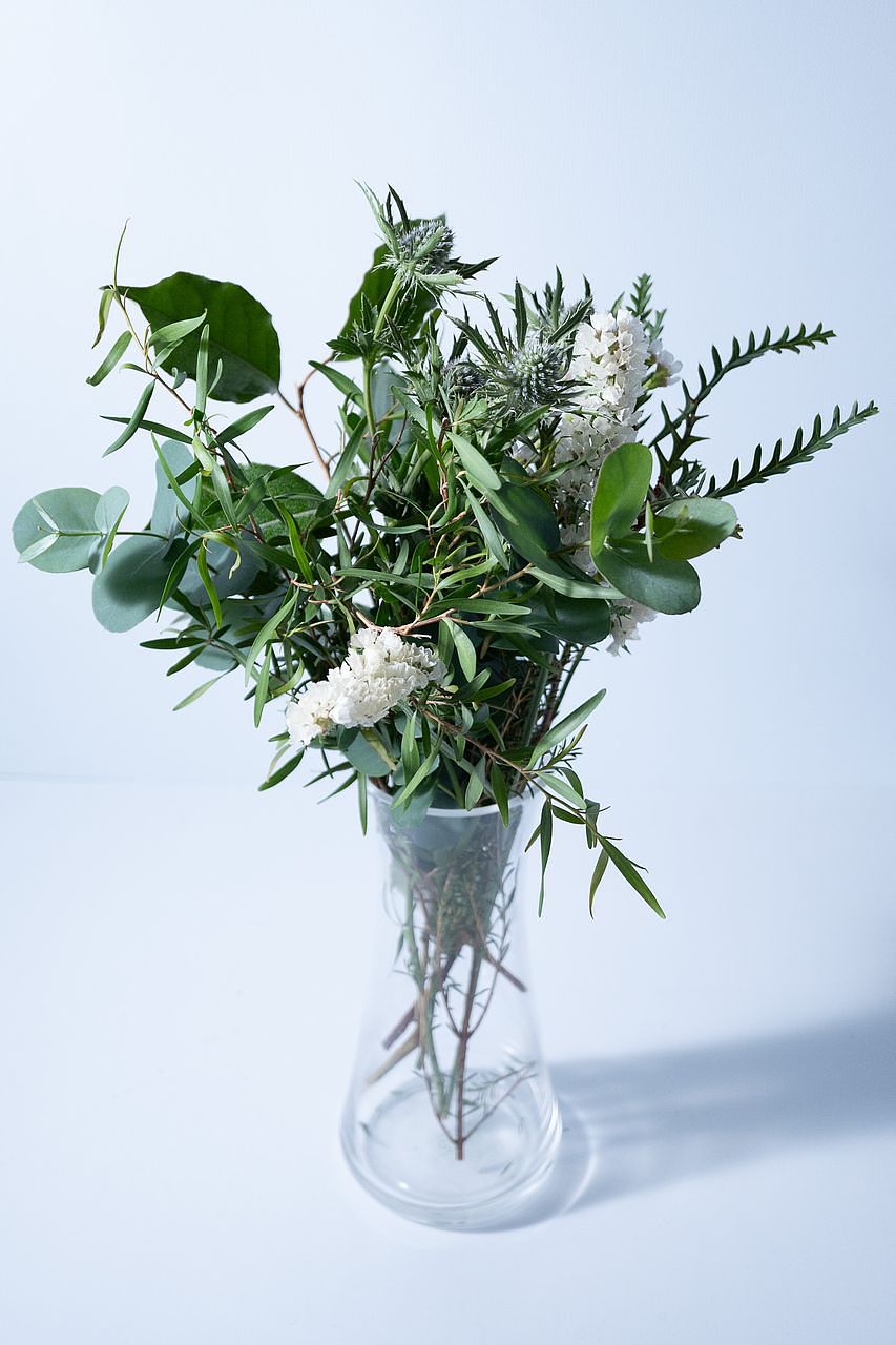 リフレッシュ効果があるメディカルハーブのティーツリーをメインに、落ち着いた香りのユーカリなど思わず深呼吸したくなる草花を束ねました🌿ティーツリーは葉を擦ると爽やかでウッディな香りを楽しむことができます。明日の元気をチャージしたい時やお家でのリラックスタイムにぜひお楽しみください🧘