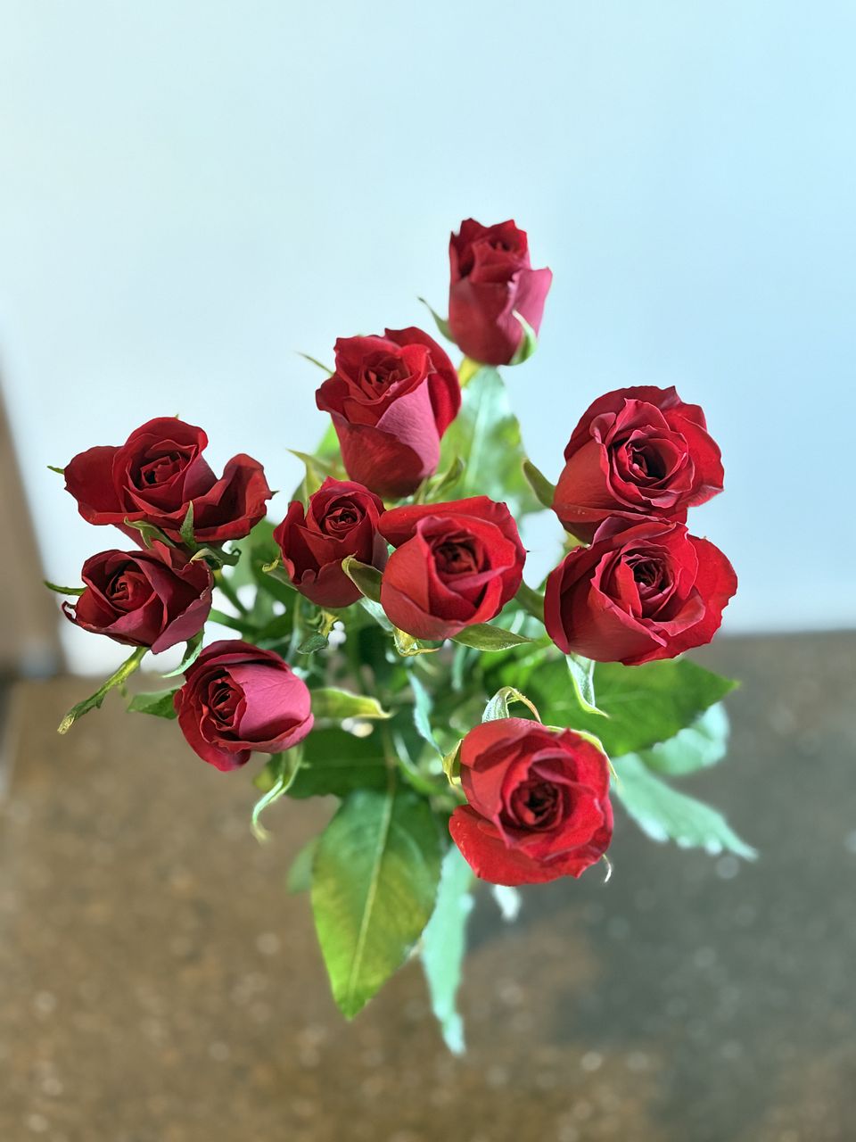 深紅でとても綺麗な薔薇です。元気な状態で届きました。可愛すぎて見るたびに癒されます。少し小振りですがこのお値段はめちゃめちゃお得。買ってよかった🥰 (写真は9本)