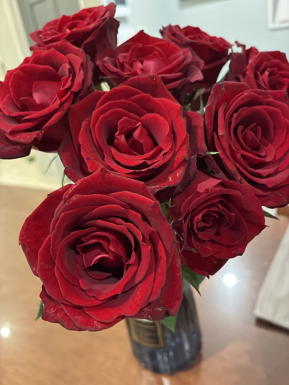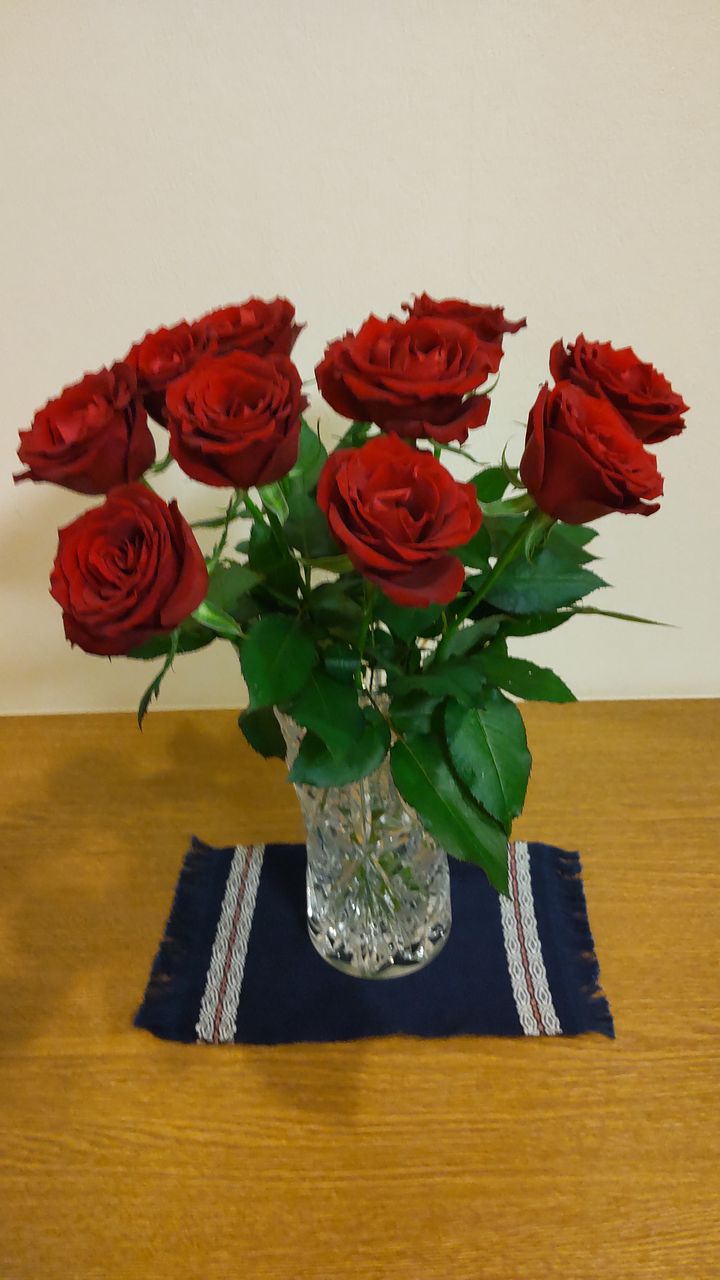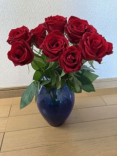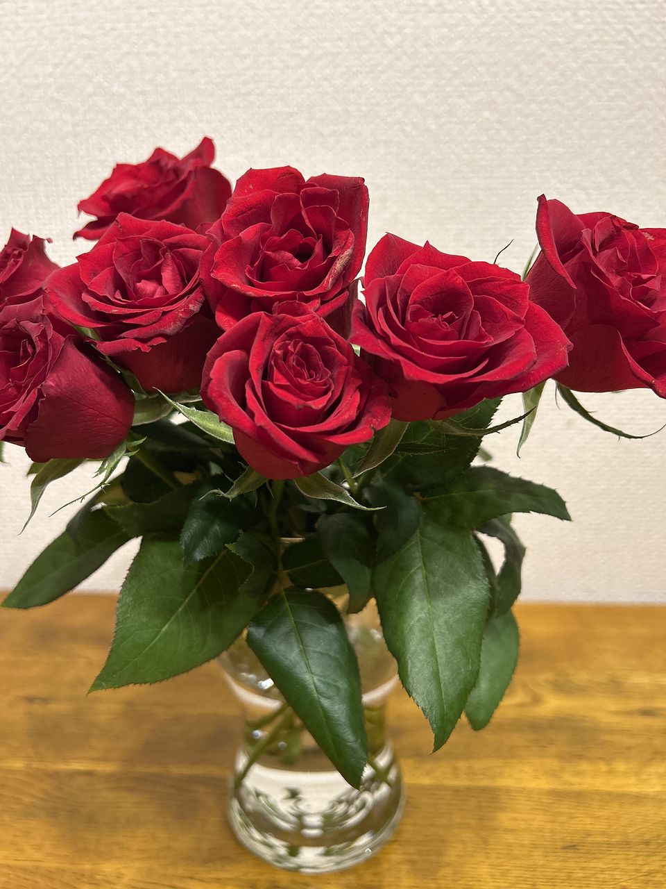 ゴージャスな真紅のバラです! お花がシャキッとしていて、長持ちしそうです。 一本折れていましたが、お花は元気なので、小さいグラスに飾りました。これはこれでステキです!