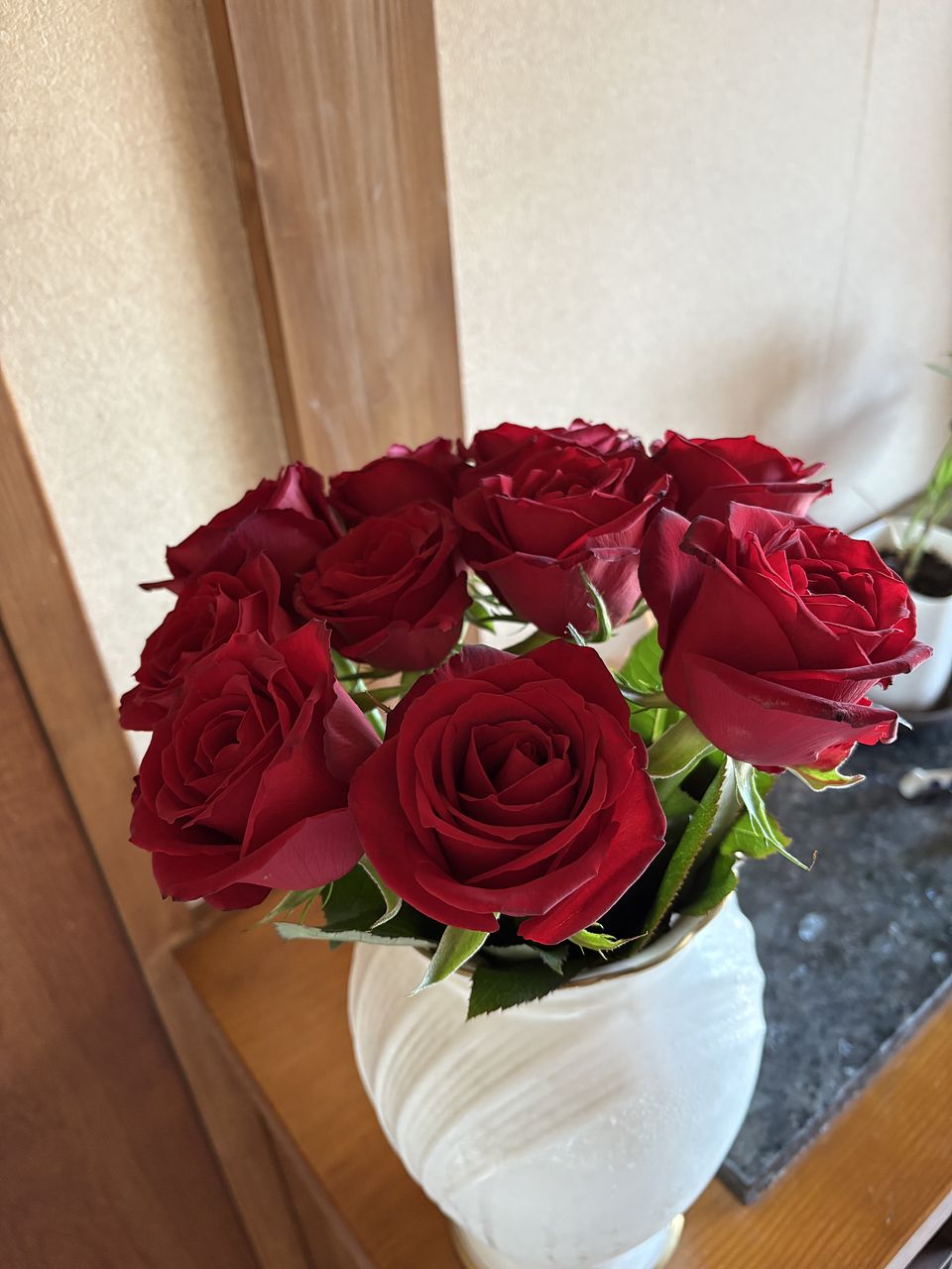 無事に届きました😊 真紅の美しいとても状態の良いバラでした🌹 写真は届いてから2日経っていますが今も綺麗 で見るたびに癒やされています✨ こんなに素敵なお花がこのお値段でいいのか? と申し訳なくなるくらいです😢 とっても綺麗なお花なのでこの写真ではありませんがInstagramにも postしました🌹✨ 素敵なお花をありがとうございました😊 リピ決定です🌈✨