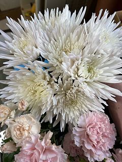 綺麗なマムが届きました 花弁もピンッと元気で薄っすら桜色っぽくて可愛いです
