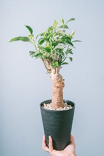 太い幹は水をたっぷり蓄えて生き抜く知恵の証。葉の形や幹のふくらみが、季節や育て方によって少しずつ変化していくので、まるで物語の続きをそばで眺めているような楽しさがあります。小さな鉢の中でも堂々たる存在感を放ち、インテリアの主役にもぴったり。