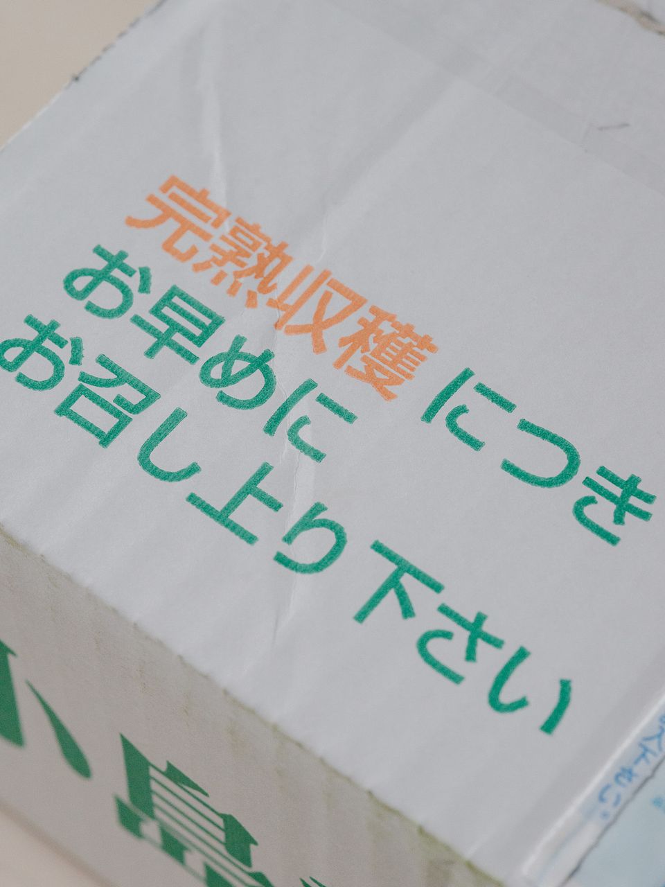 保管方法:到着後は冷蔵庫の野菜室で保存してください。完熟して収穫していますので、3〜5日程度でできるだけお早めにお召し上がりください。追熟の必要はありません。