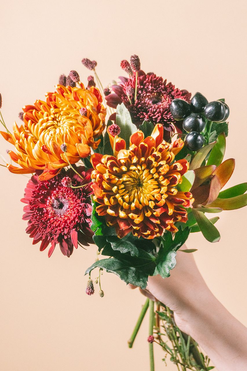 ネイティブフラワーやこっくり秋色のドライ向きのお花やグリーンと一緒に束ねました🧡