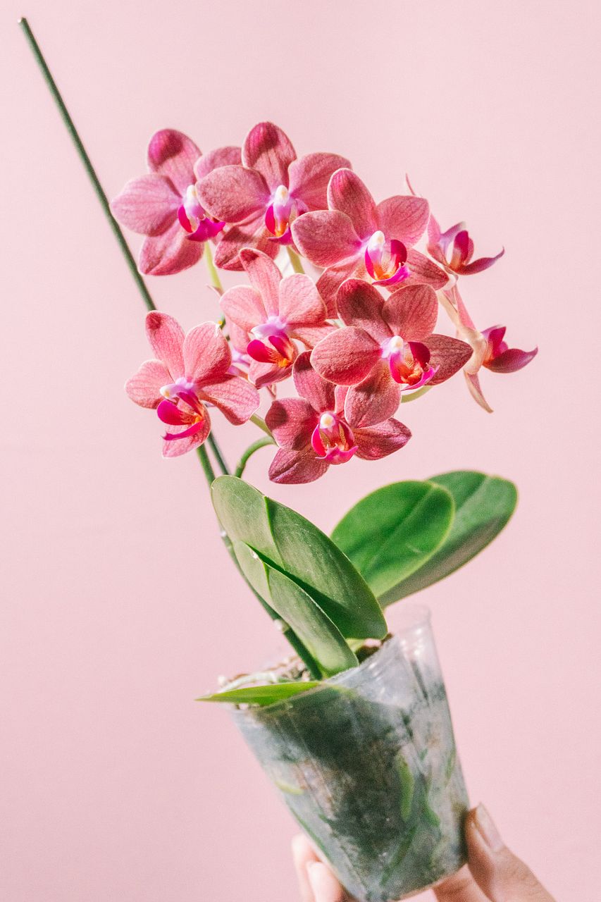 シックで洗練された雰囲気を持ち、上品さの中にモダンな存在感を漂わせます。白やピンクの胡蝶蘭とは一線を画す、個性派の一鉢です。